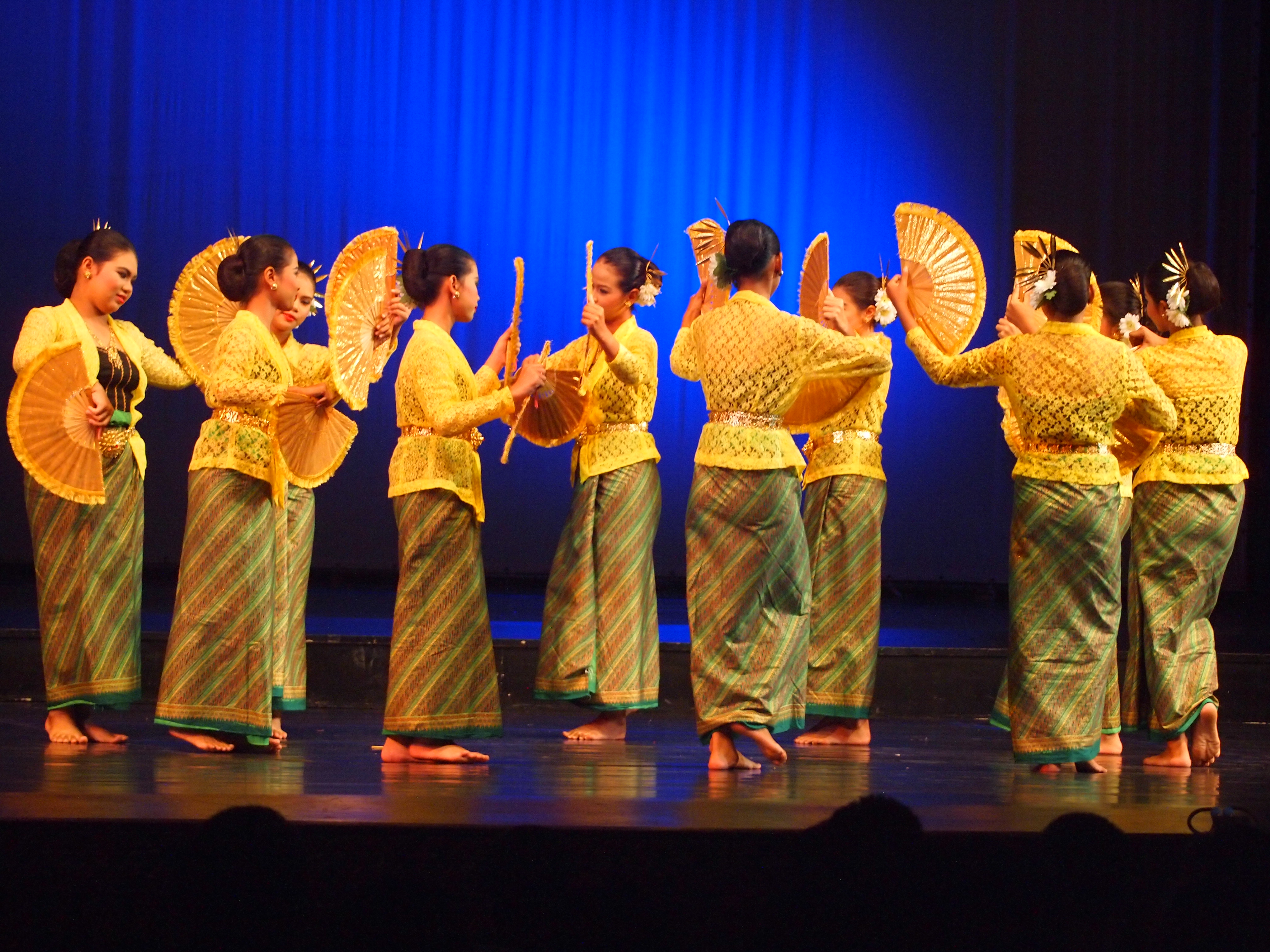 ภาคใต้โดยทั่วไปภาคใต้มีอาณาเขตติดกับทะเลและประเทศมาเลเซีย ประชากรจึงมีชีวิตความเป็นอยู่ ขนบธรรมเนียมประเพณีบางส่วนที่คล้ายคลึงกัน ประชากรมีอุปนิสัยรักพวกพ้อง รักถิ่นที่อยู่อาศัย และศิลปวัฒนธรรมของตนเอง จึงมีความพยายามที่จะช่วยกันอนุรักษ์ไว้จนสืบมาจนถึงทุกวันนี้ การแสดงของภาคใต้มีลีลาท่ารำคล้ายกับการเคลื่อนไหวของร่างกายมากกว่าการฟ้อนรำ ซึ่งจะออกมาในลักษณะกระตุ้นอารมณ์ให้มีชีวิตชีวาและสนุกสนาน เช่น โนรา หนังตะลุง รองเง็ง ตารีกีปัส เป็นต้น
